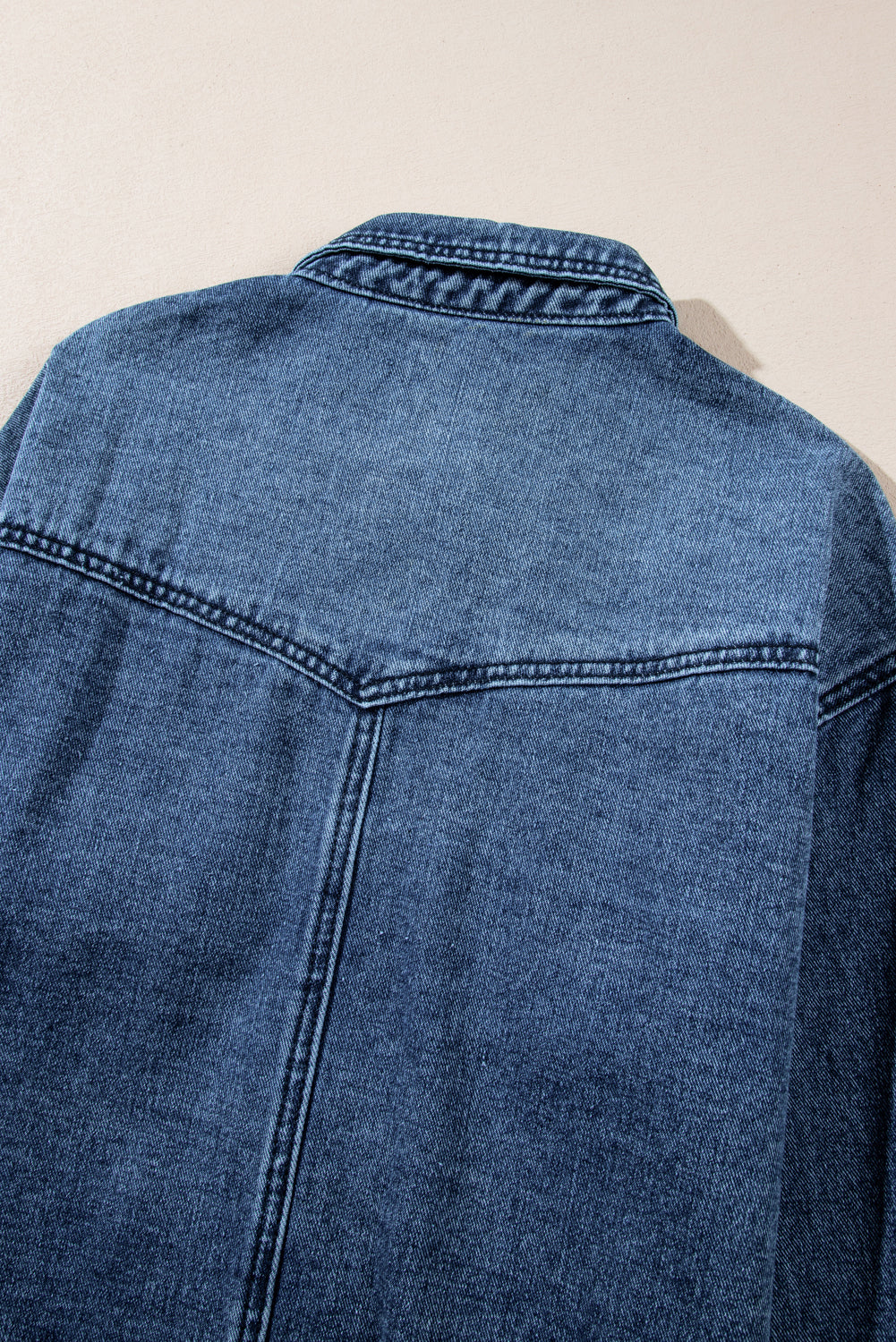 Sail Blue Flap Pocket Snap Button Wash Denim Shacket