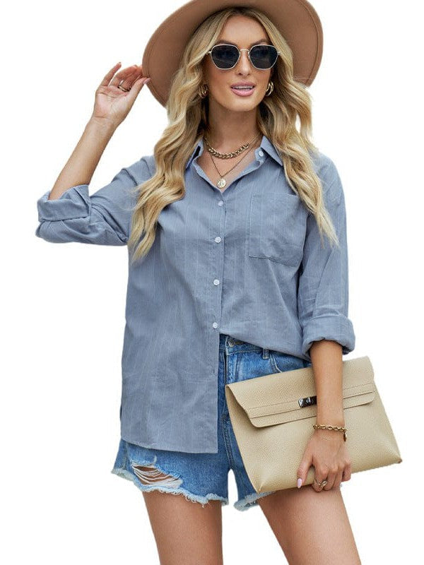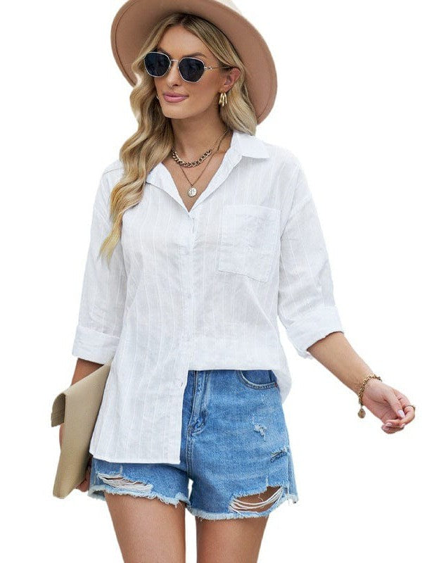 Lapel Vertical Striped Blouse With Long Sleeves And Loose Fit