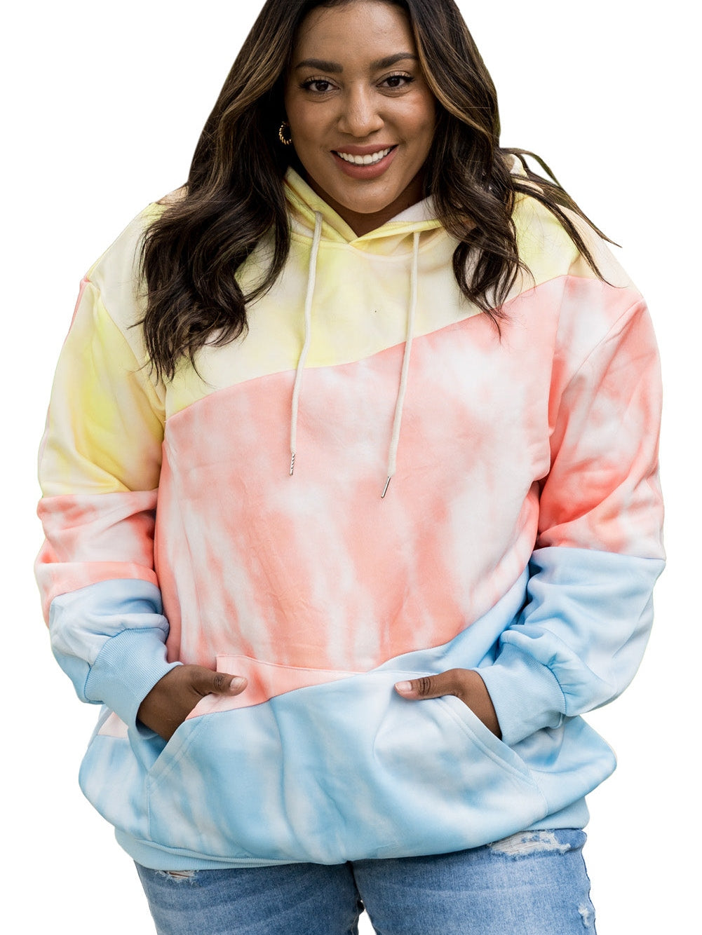 Cozy Sky Blue Plus Size Hoodie with Colorblock Design