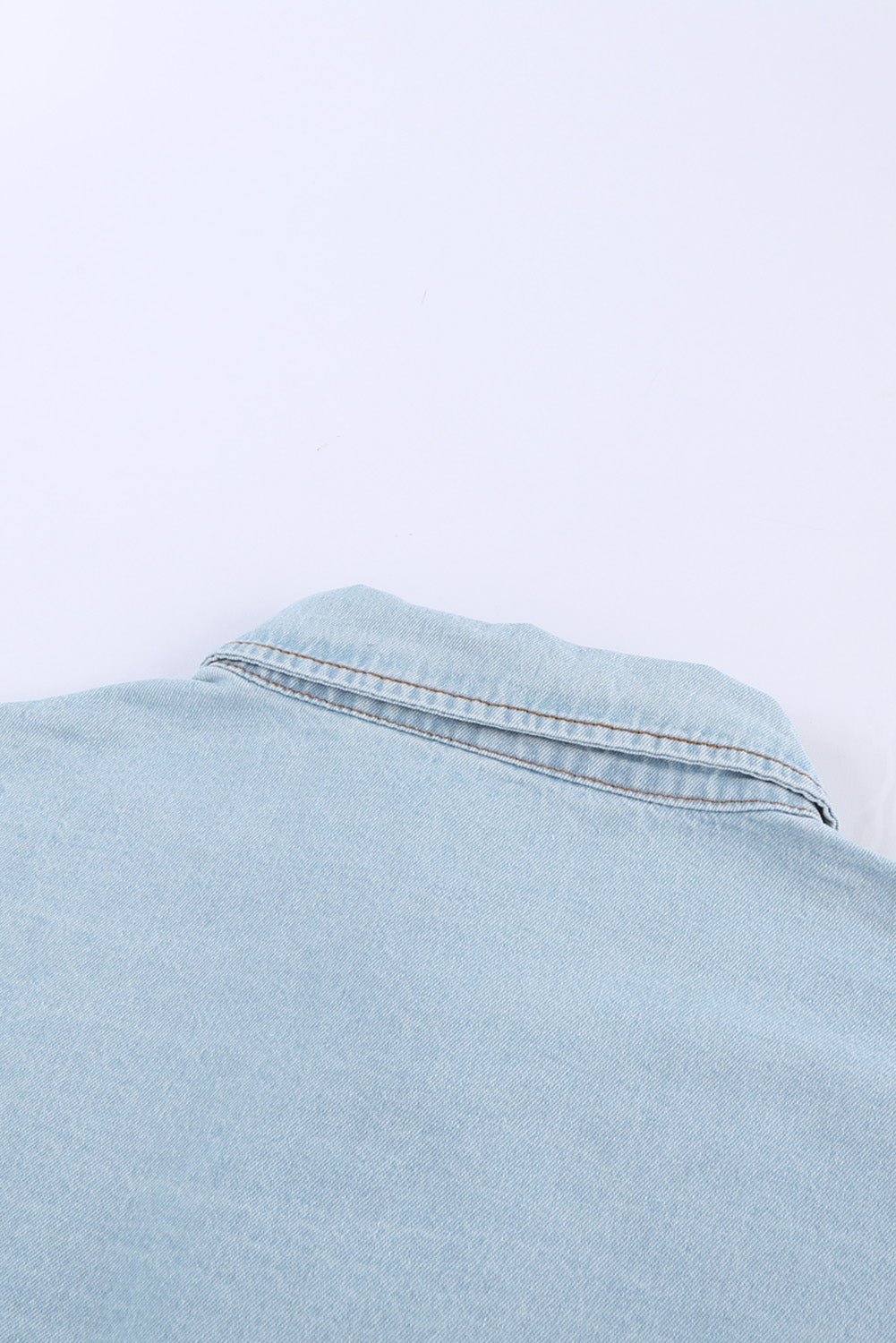 This jacket is more than just clothing; it's a statement piece that reflects your bold personality and fashion-forward thinking. Whether you're heading out for a casual day with friends or running errands, the Sky Blue Contrast Leopard Denim Jacket ensures you stand out in style.