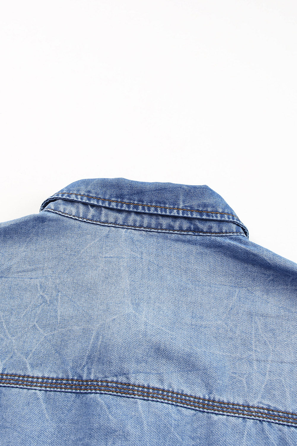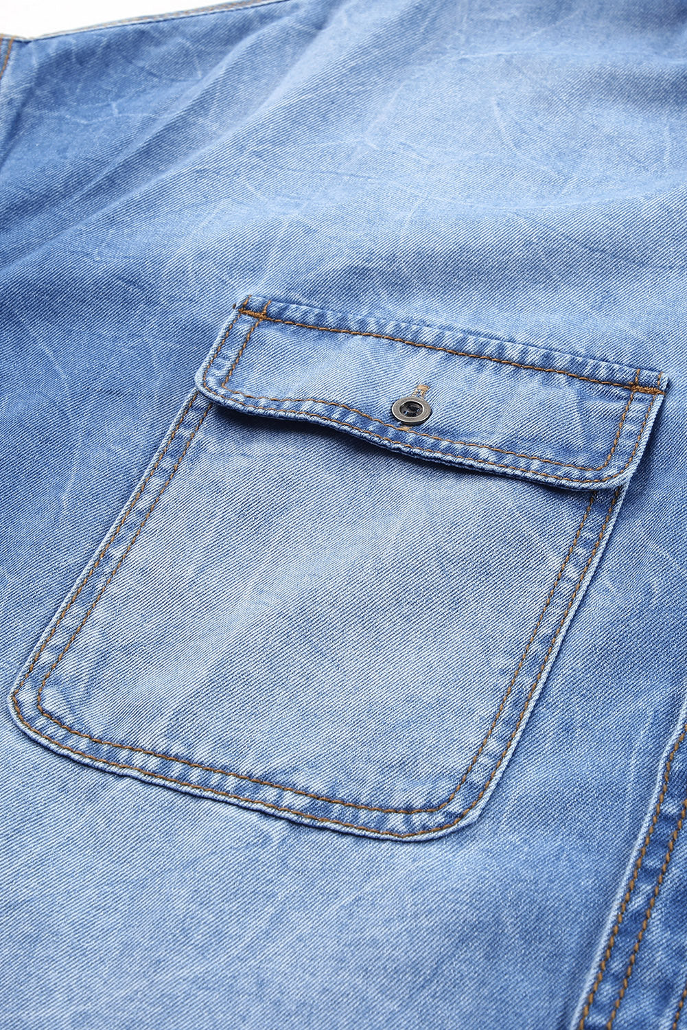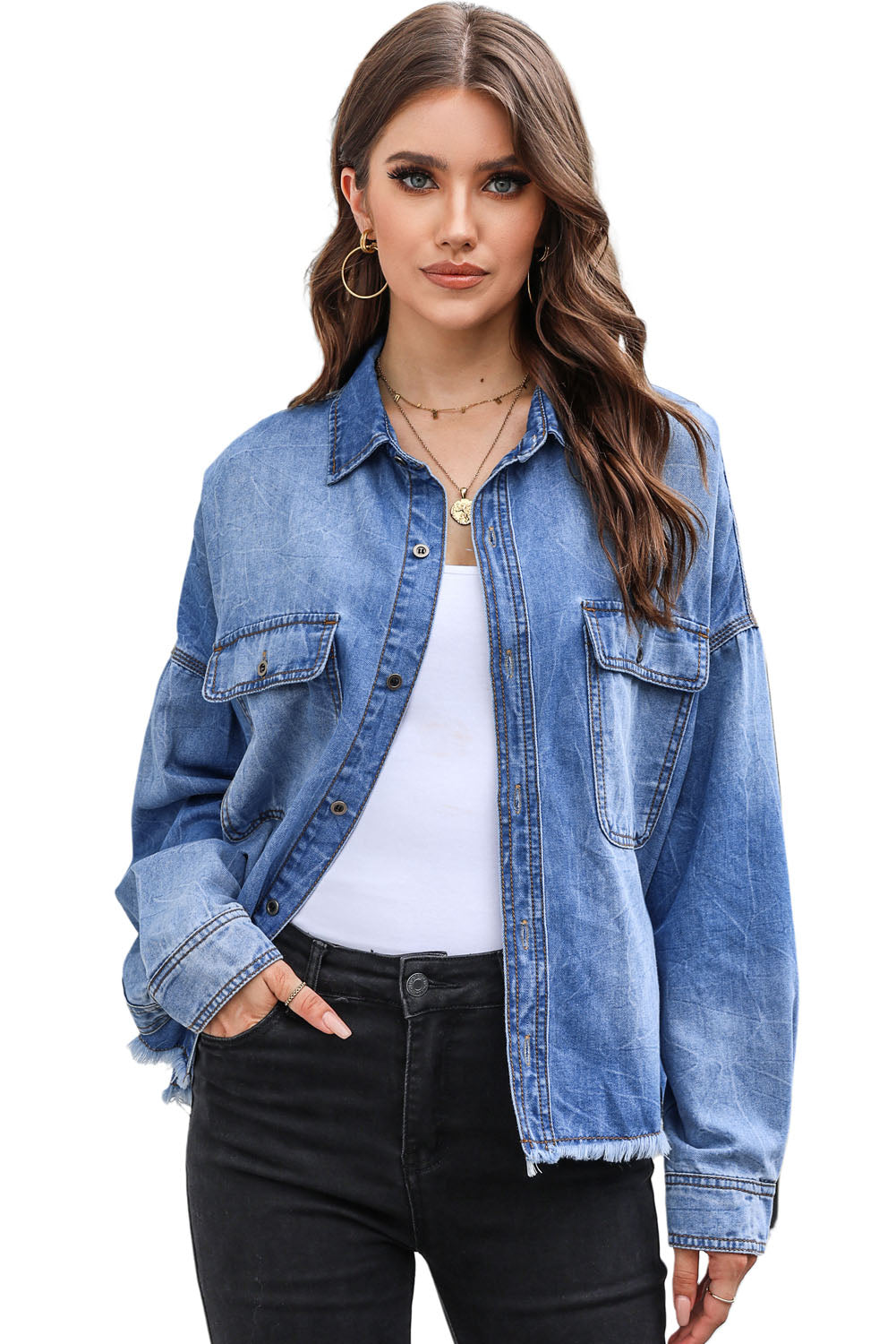 Sky Blue Flap Pockets Raw Hem Denim Shacket