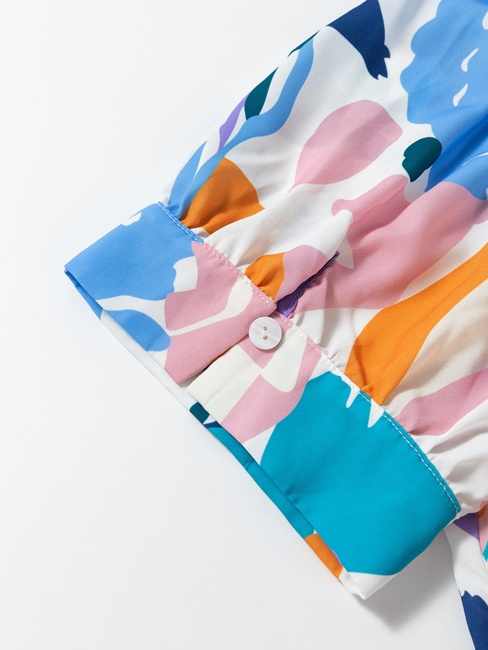 Unleash your inner fashionista with our Sky Blue Plus Abstract Print Puff Short Sleeve V Neck Top. Elevate your style game with this stunning piece that offers both comfort and chic appeal.