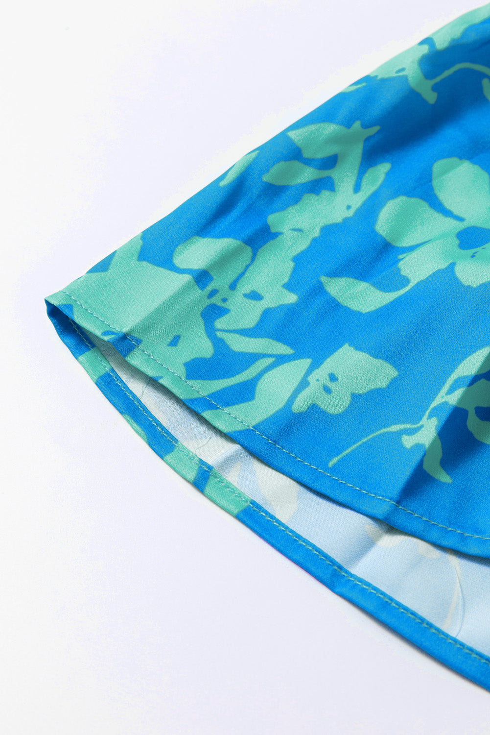 Sky Blue Floral Print Plus Size Flutter Sleeve Mini Dress with Button Detail