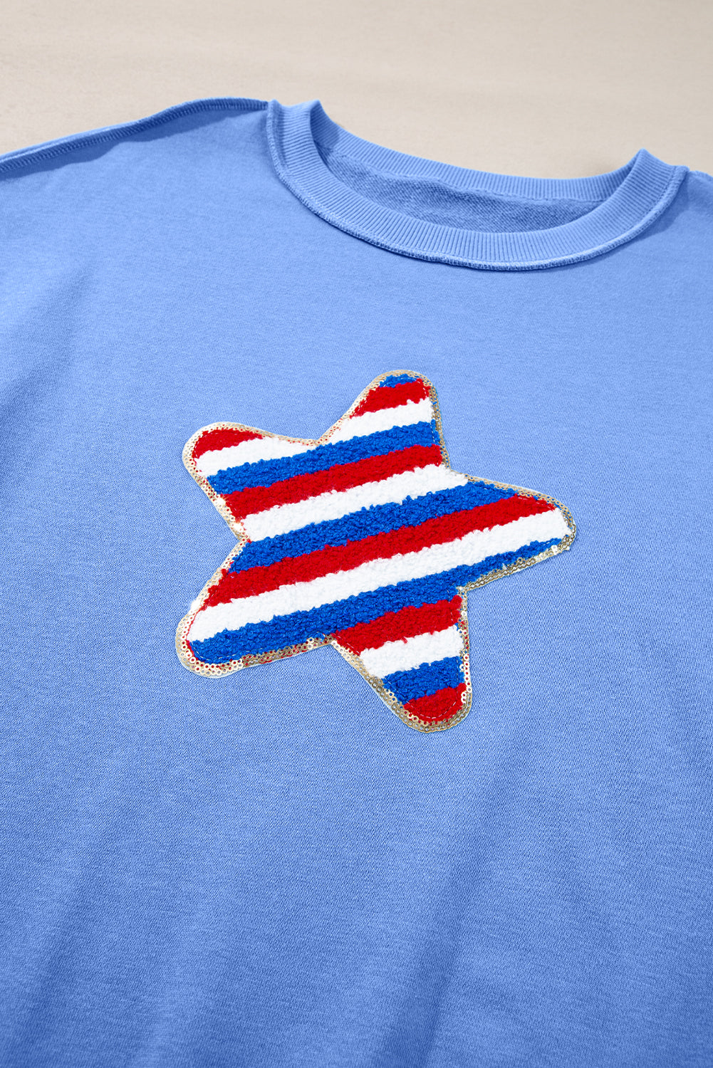 Sky Blue Sequin Trim Embroidered Star USA Pattern Sweatshirt