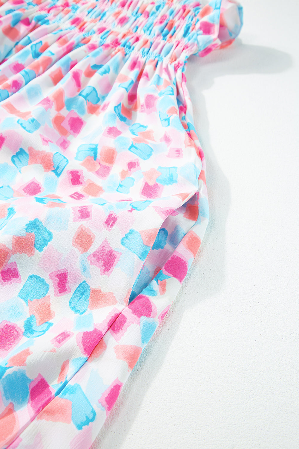 Sky Blue Smocked Empire Waist Ruffled Shift Dress