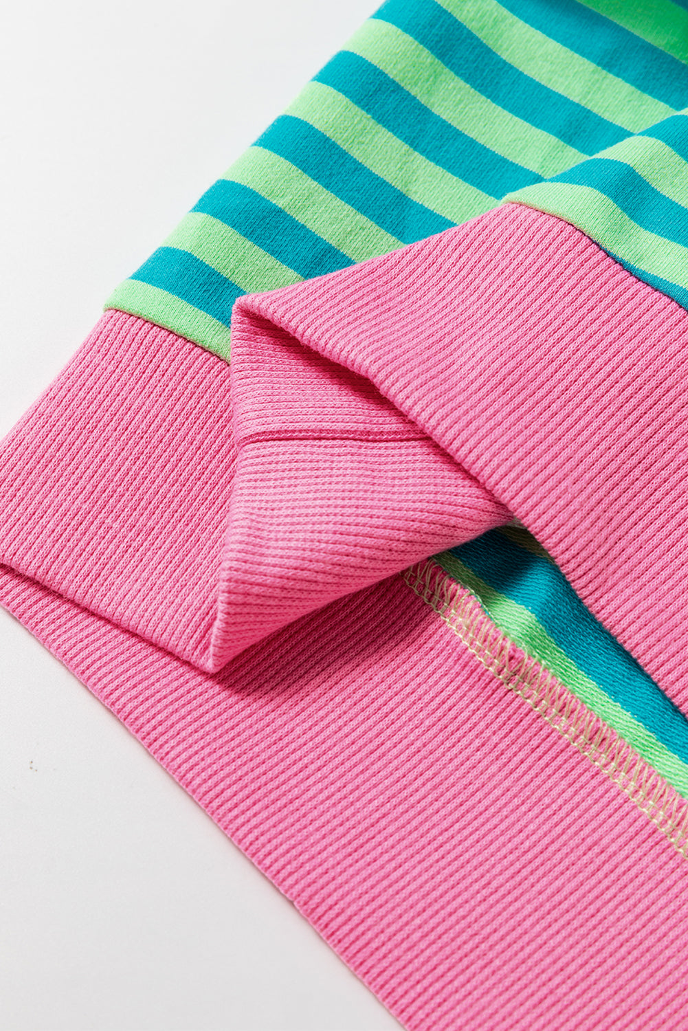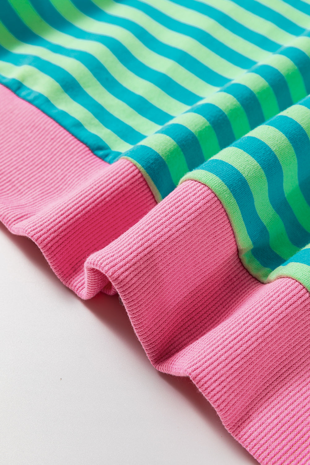 Sky Blue Stripe Oversized Contrast Trim Pullover Sweatshirt