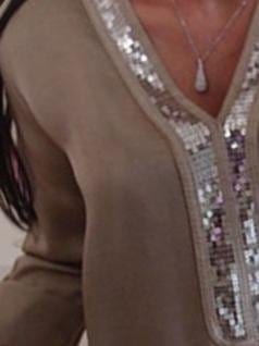 Elegant Sequin Detail V-Neck Long-sleeve T-shirt