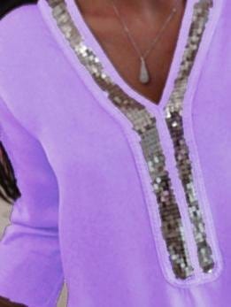 Upgrade your casual wardrobe with our Solid Stitching V-neck Sequin Long-sleeved T-shirt. Crafted from a blend of polyester and cotton, this stylish t-shirt offers both comfort and durability. The solid stitching and V-neck design add a touch of elegance, while the long sleeves make it perfect for all seasons.