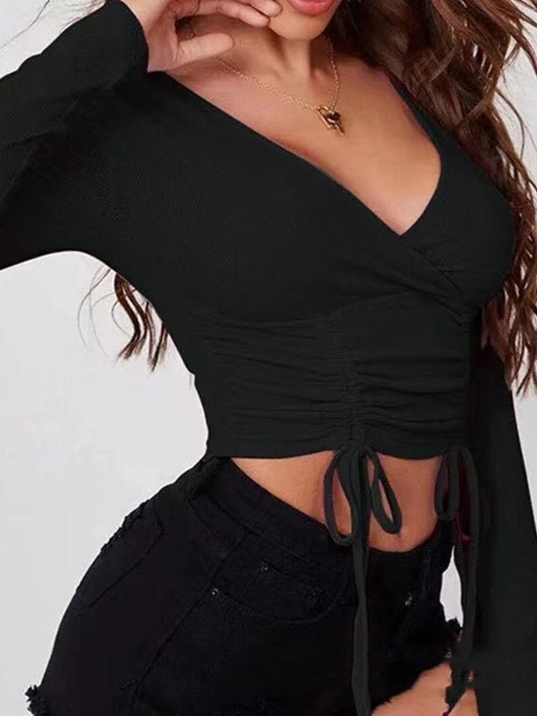 T-Shirts Solid Tie Tight Long Sleeve T-Shirt for Women