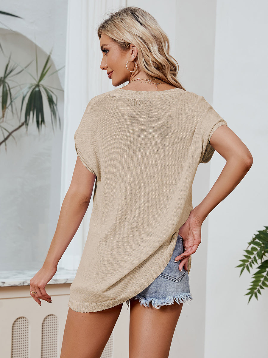 T-Shirts V-Neck Color Contrast Loose Casual T-Shirt for Women