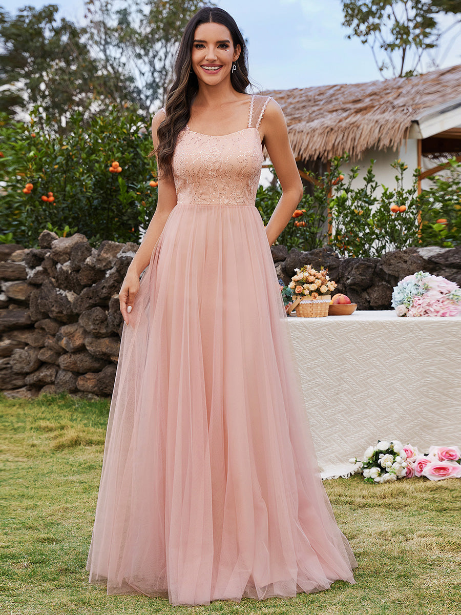 Tulle Sweetheart Spaghetti Strap Embroidery Sequin Wholesale Bridesmaid Dress