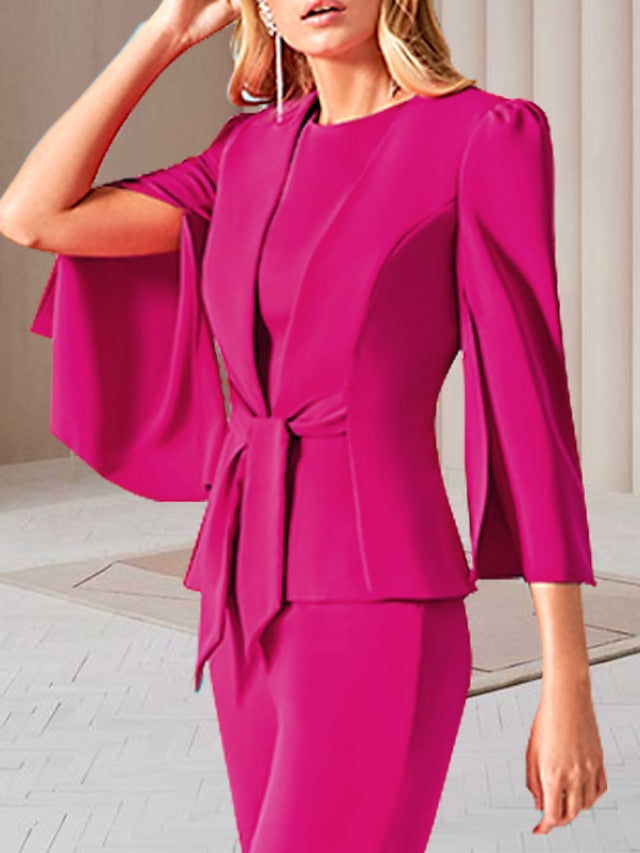 Two Piece Jumpsuits Mother of the Bride Dress Elegant Wrap Included Jewel Neck Ankle Length Stretch Chiffon 3/4 Length Sleeve with Bandage 2023