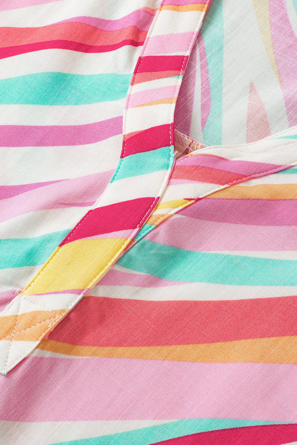 Women's Floral Apricot Striped Puff Dress with 3/4 Sleeves – Chic and Comfortable for Spring and Summer Adventures