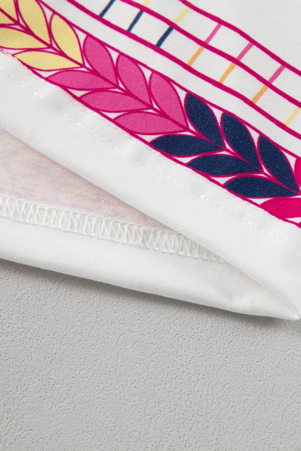 White Boho Abstract Print Ruffle Sleeve Flowy Top