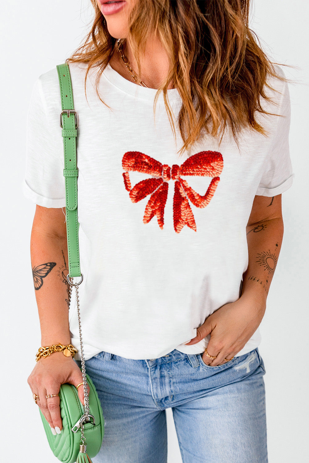 Whether you're dressing it up with accessories or keeping it simple, our White Bowknot Graphic Casual T-Shirt is the perfect foundation for any outfit. Embrace comfort and style this season!