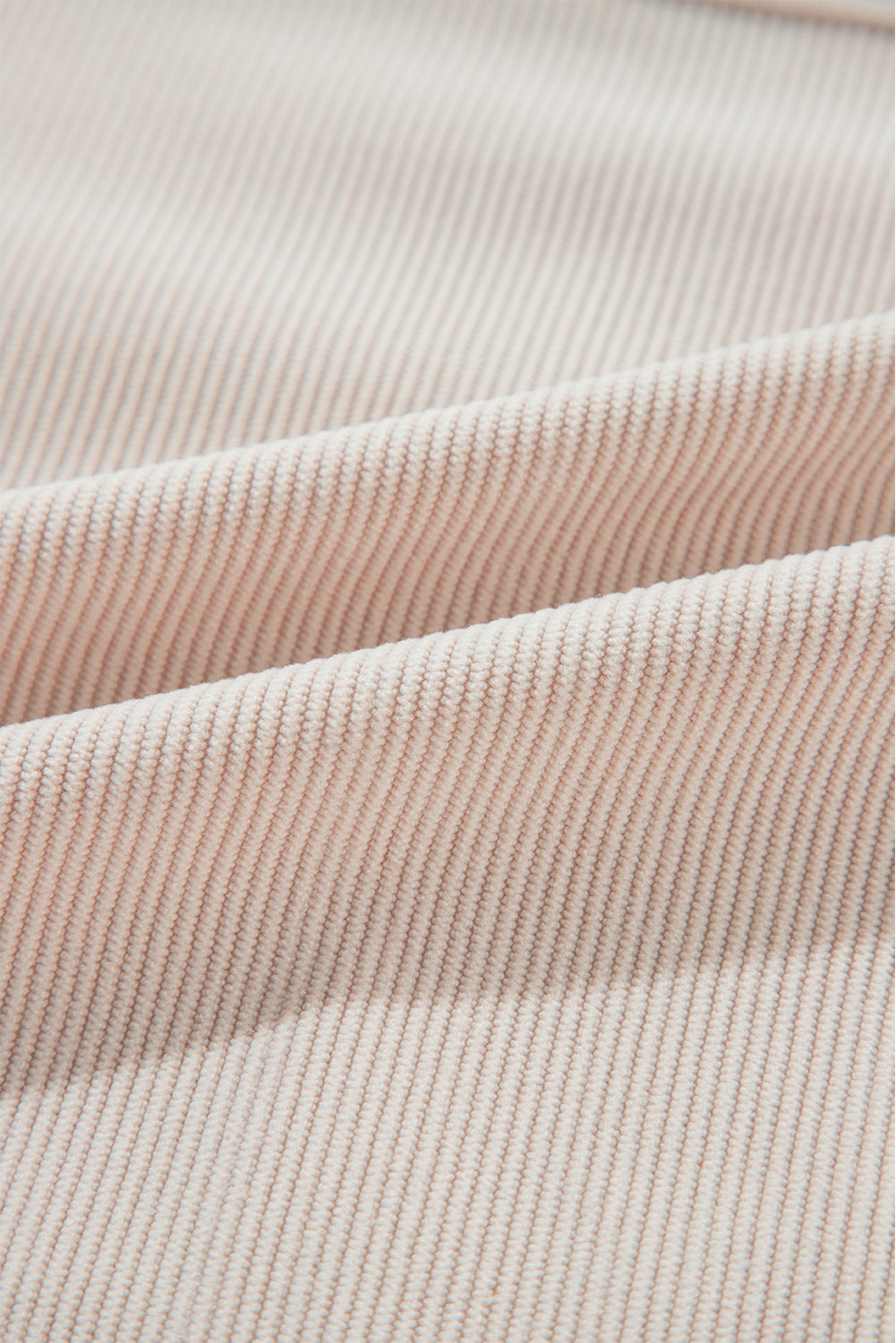 Elevate Your Wardrobe with Our White Corduroy Drawstring Hooded Pocket Zip Up Jacket