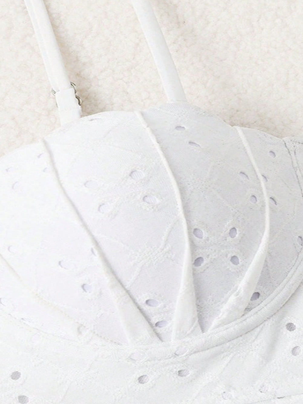 Elegant White Eyelet Two-Piece Tankini with Fit and Flare Silhouette