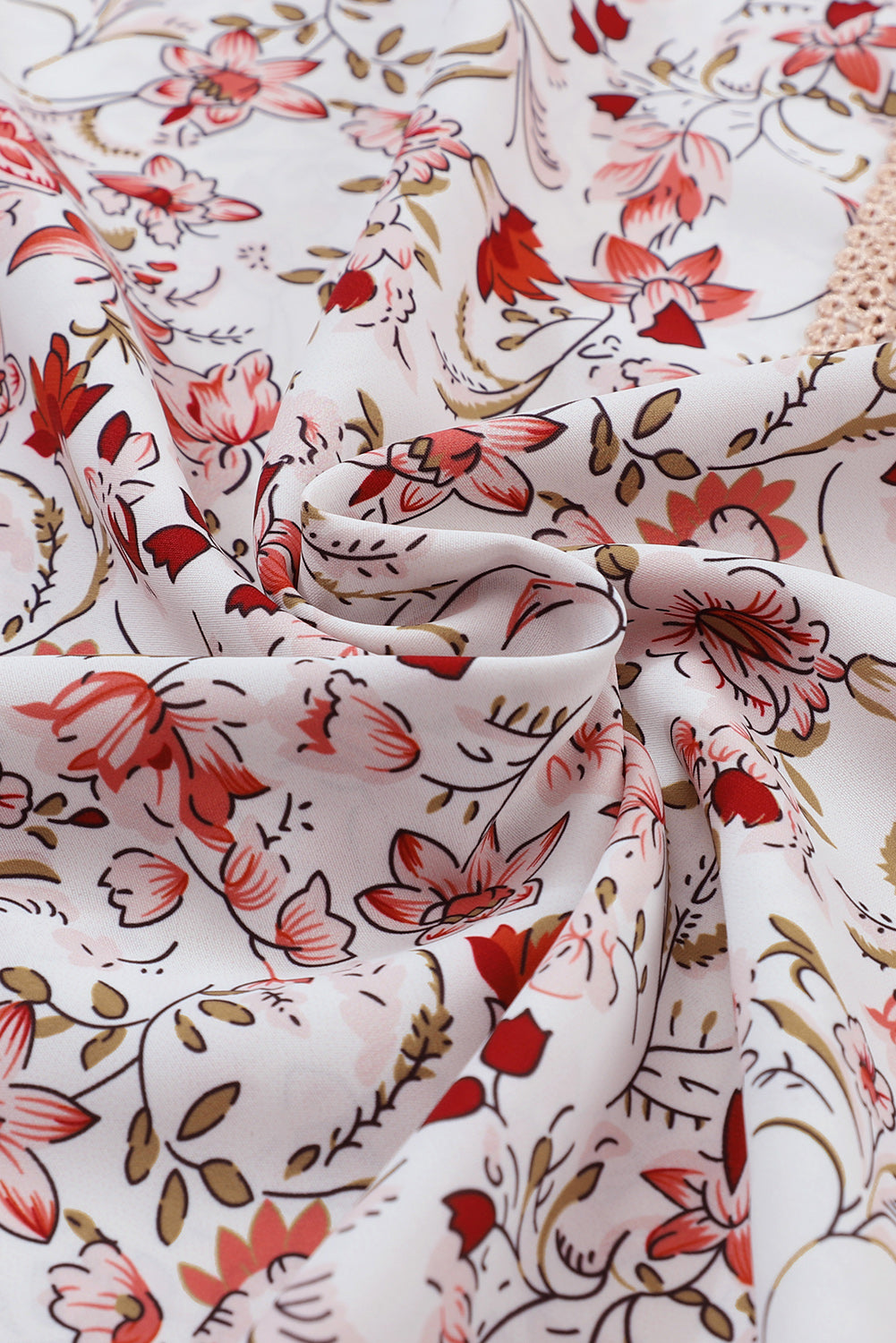 Elegant White Lace V-Neck Blouse with Floral Pattern