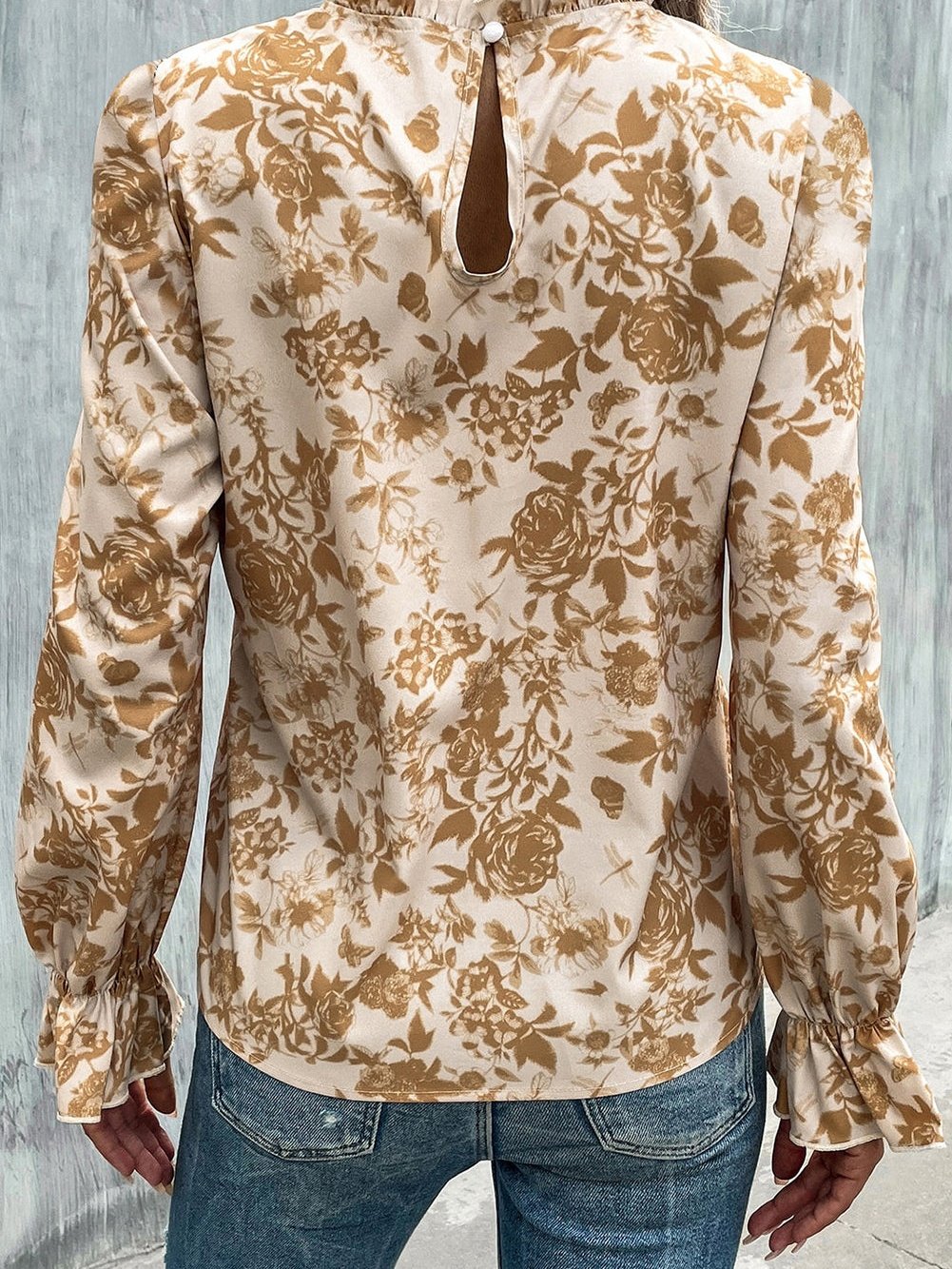 This simple floral blouse is suitable for all kinds of occasions. The contrast print design allows you to embrace the beauty of flowers. The frilled neckline and flounce sleeves effortlessly add a sweet touch. Pair it with straight-leg pants, jeans, or shorts for a chic outfit. Wholesale blouses for women keep bringing you new styles.