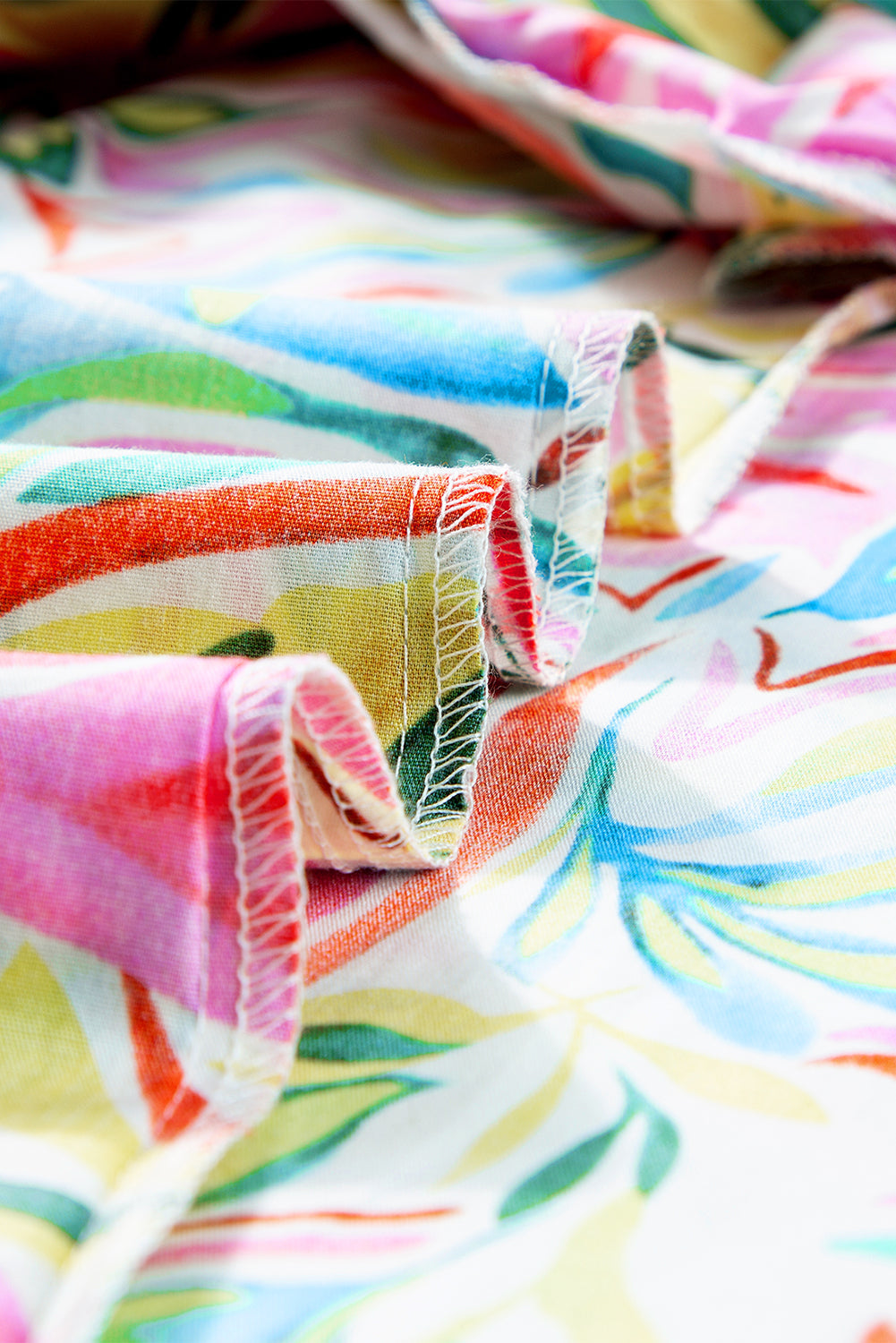 Introducing the White Floral Print Ruffled Sleeveless Midi Dress, a stunning addition to your seasonal collection. Crafted from 100% cotton, this dress is designed to keep you cool and stylish during those warm summer days.