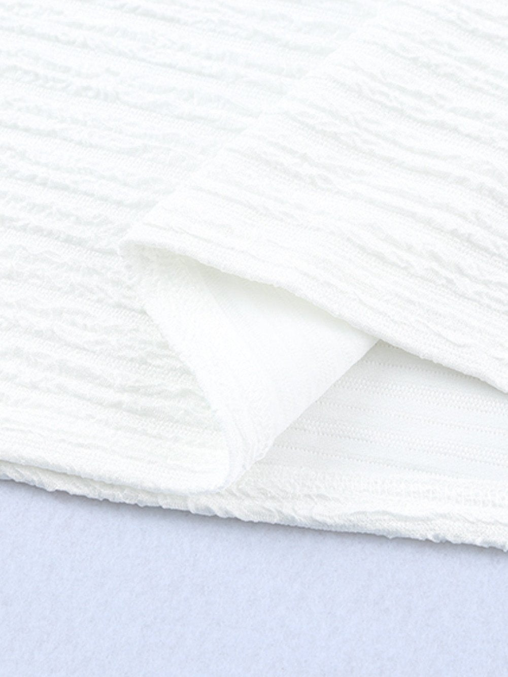 Stay effortlessly stylish with our White Frilled Smocked Neck Textured Bishop Sleeve Blouse. This elegant piece is designed to elevate your look with its unique features: