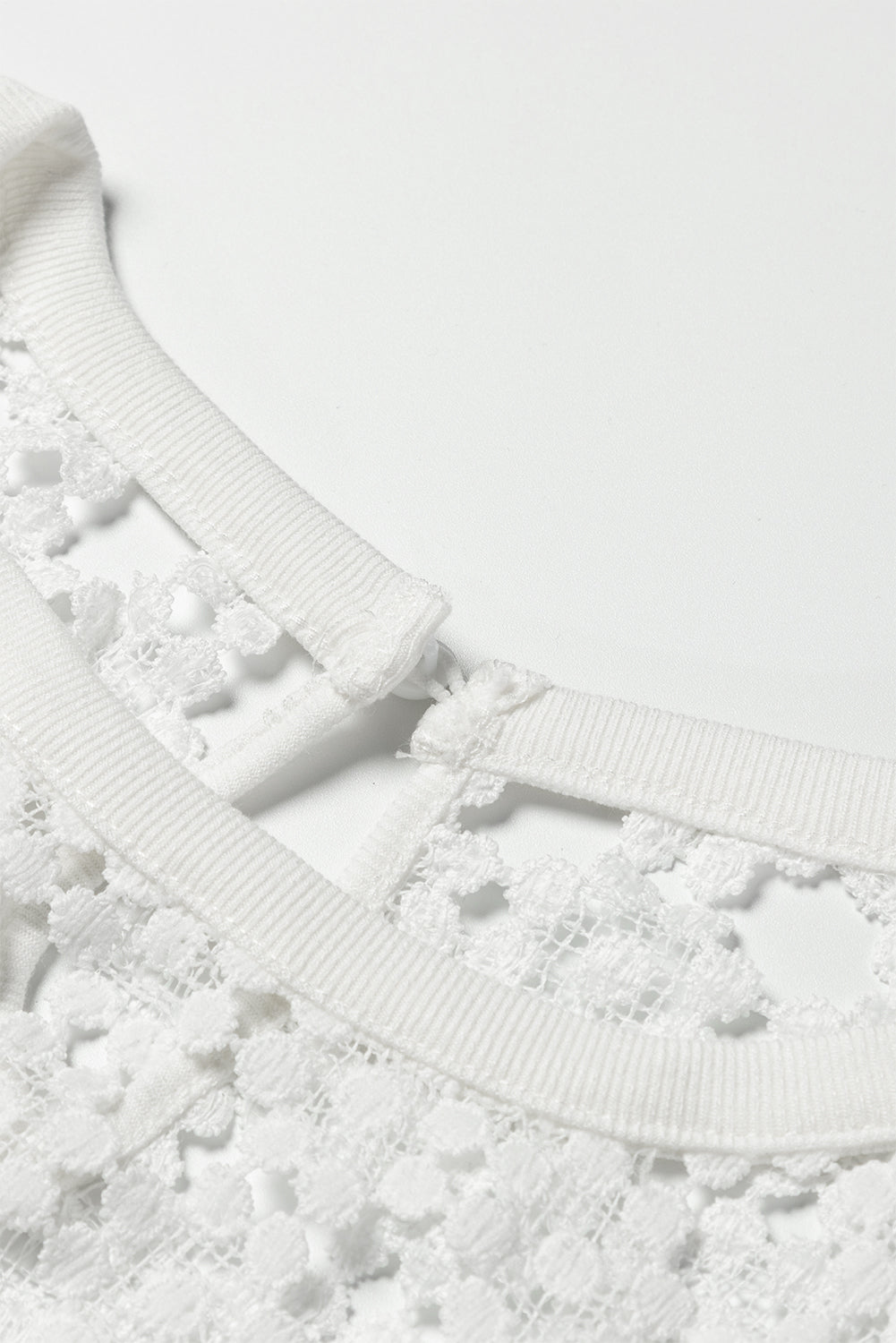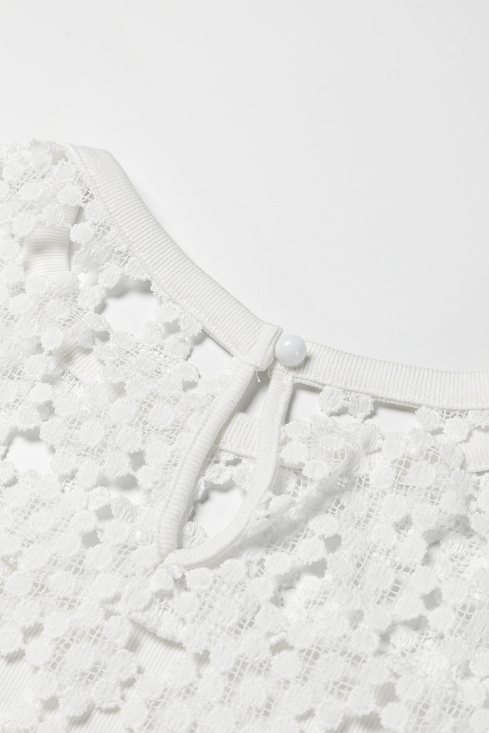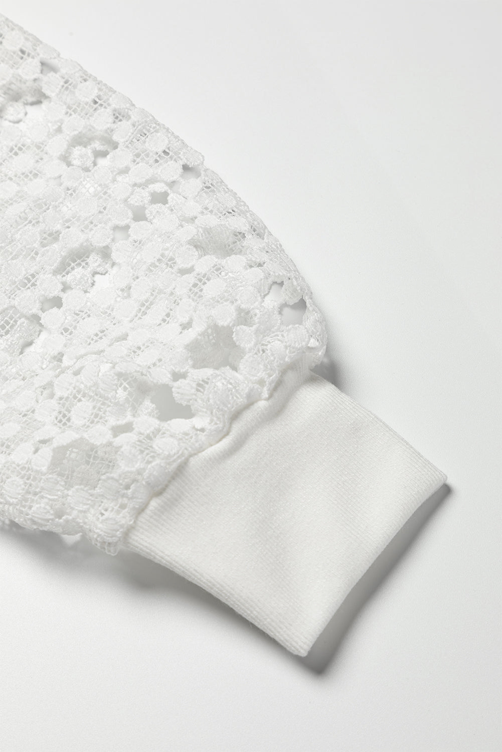 White Hollowed Floral Lace Splicing Long Sleeve Top