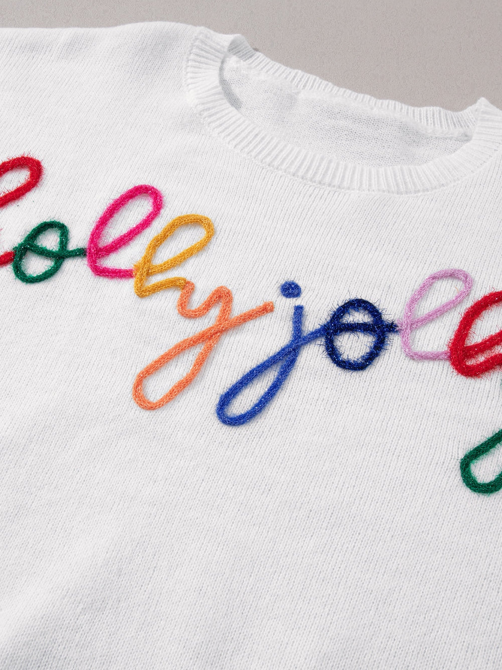 This White Holly Jolly Round Neck Casual Sweater is perfect for adding a touch of festive spirit to your fall wardrobe. Whether you're running errands, meeting friends, or enjoying a casual day out, this sweater offers comfort and style. The round neck and long sleeves provide warmth, while the holly jolly embroidery adds a playful charm to your outfit.