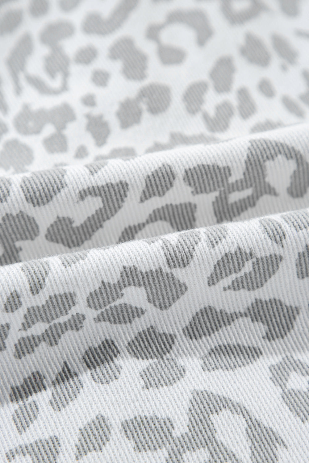 White Leopard Printed Flap Pocket Denim Jacket