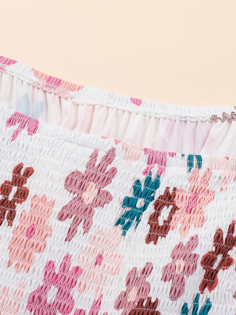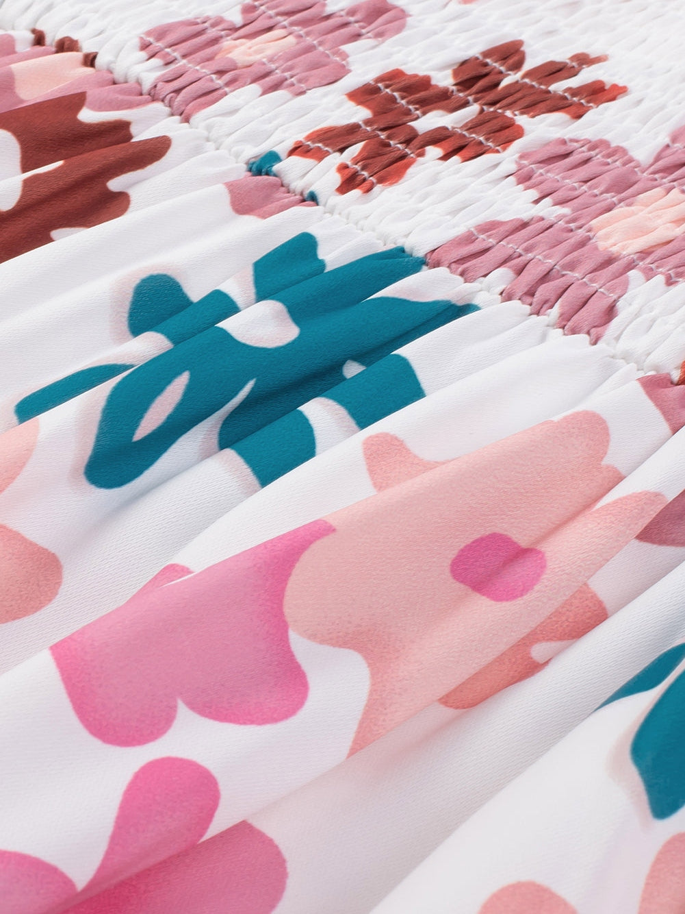 Floral Print Smocked Off Shoulder Plus Size Midi Dress in White
