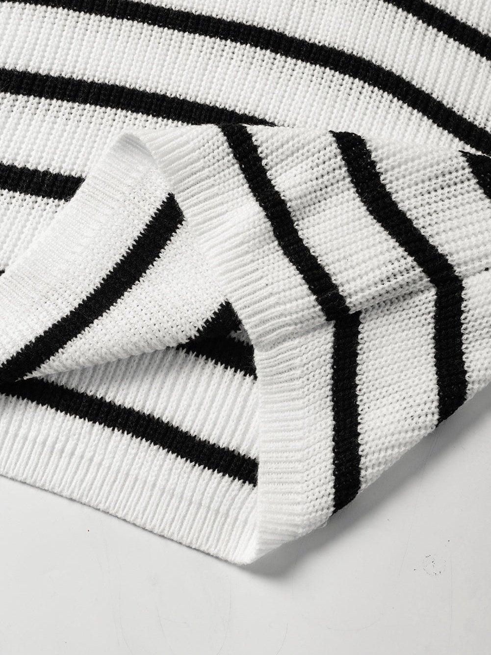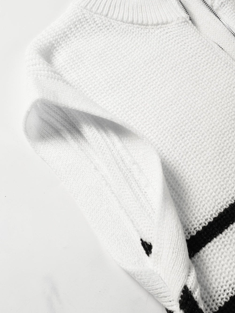 White Stripe Half Zip Split Stand Neck Sweater T-shirt