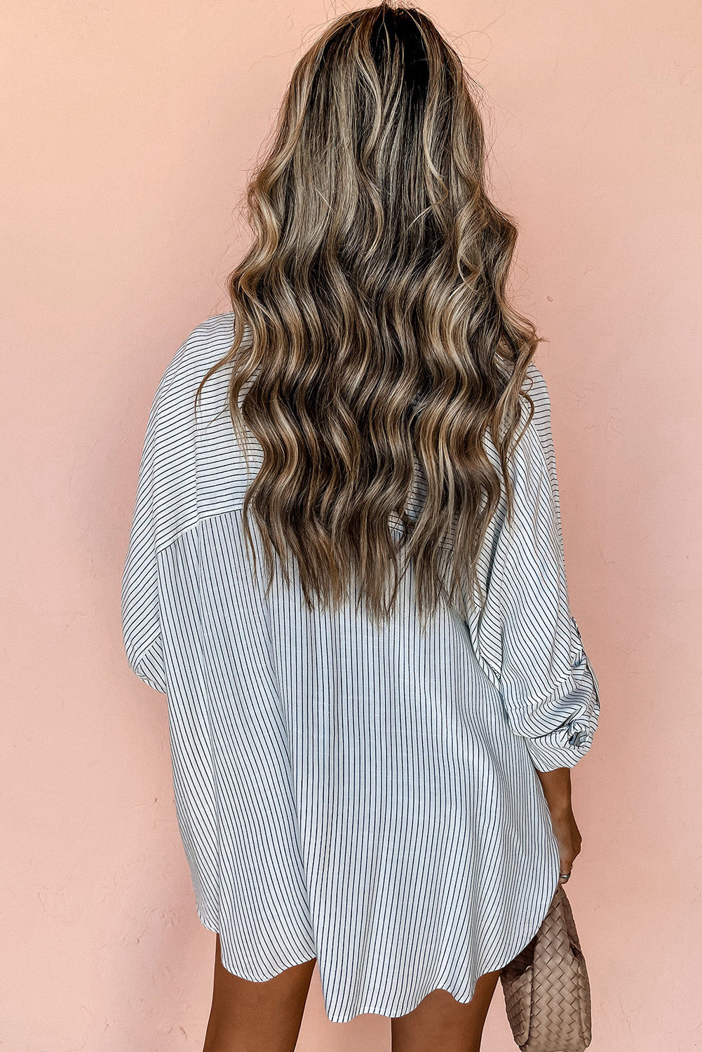 Discover the Elegance of the White Stripe Rolled Tab Sleeve Buttoned Plus Size Shirt