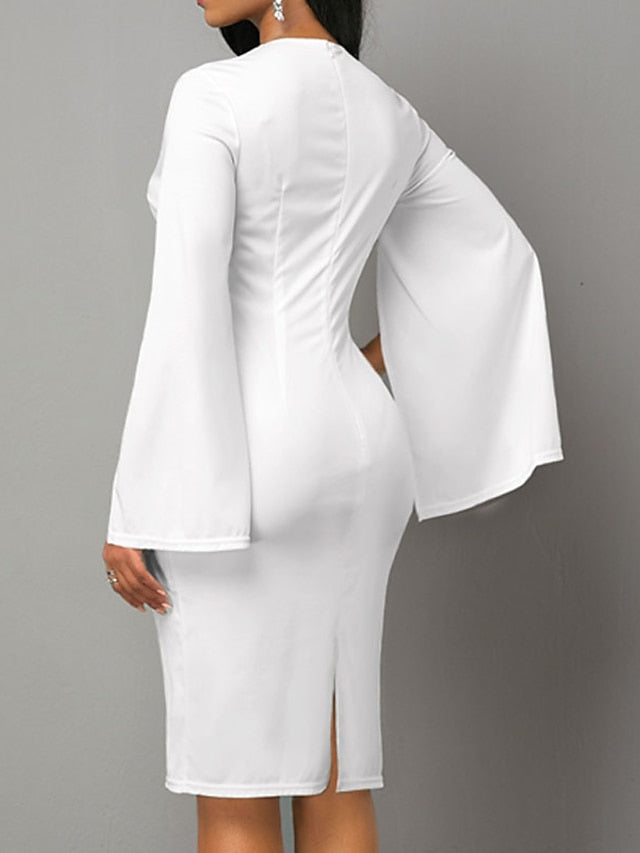 - Perfect for the spring and summer seasons- Long sleeves for added warmth and coverage- Specifically designed for women- Elegant and stylish design- Versatile for fall and winter occasions- Bodycon dress type for a flattering fit- Midi dress length for a chic look.