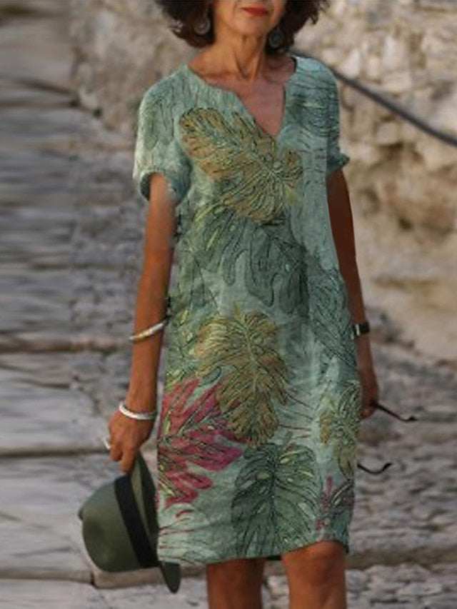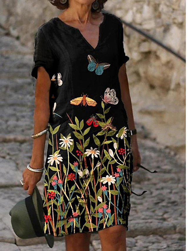 Women's Dress - Casual Dress Midi Dress Black Lavender Fuchsia Short Sleeve Print Print Spring Summer V Neck Casual S M L XL XXL 3XL