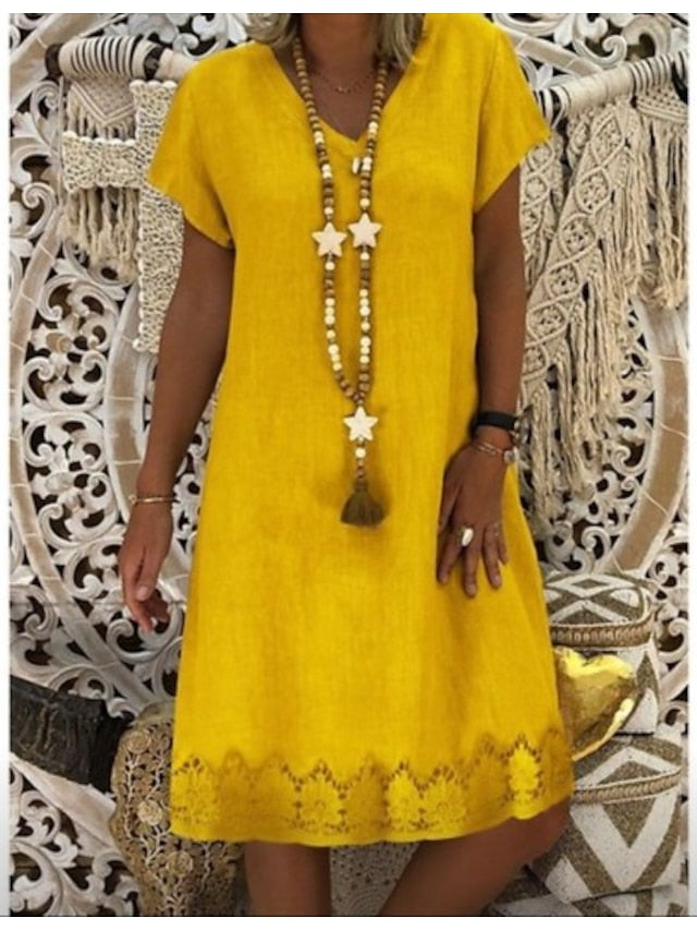 Women's Dress - Casual Dress Midi Dress Pink Short Sleeve Pure Color Print Spring Summer V Neck Casual Loose Fit 2023 S M L XL XXL XXXL
