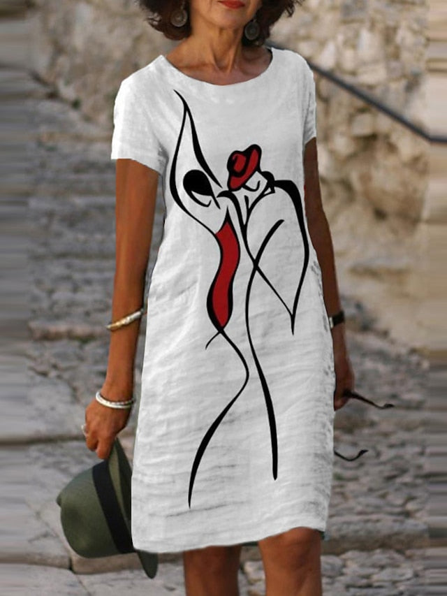 Women's Dress - Casual Dress Shift Dress Mini Dress Black White Purple Short Sleeve Leaf Print Summer Spring Crew Neck Fashion Vacation Summer Dress Spring Dress 2023 S M L XL XXL 3XL