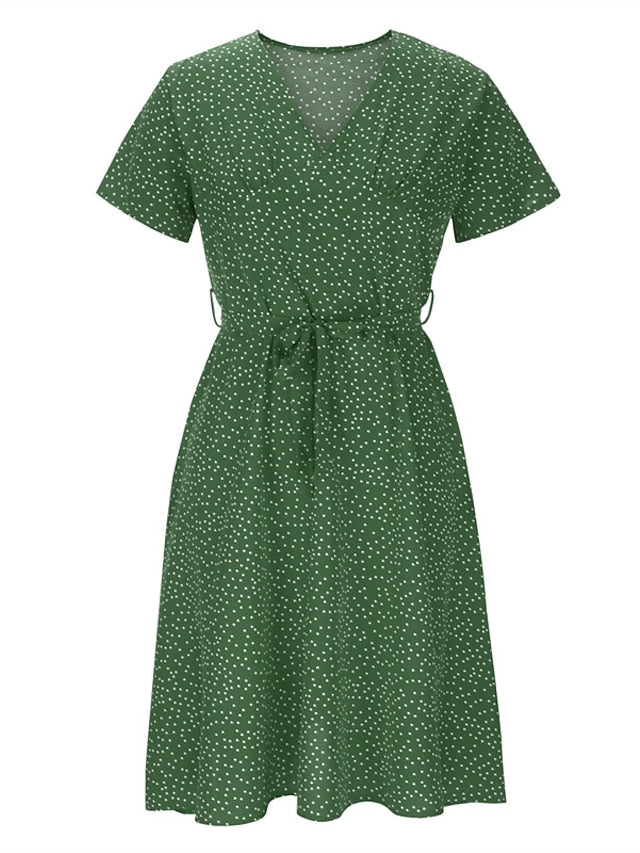 - Perfect for Spring and Summer seasons- Short Sleeve design for a comfortable fit- Specifically made for women- Ideal for vacation trips- Features a stylish V Neckline- A fashionable Midi Dress that suits any occasion
