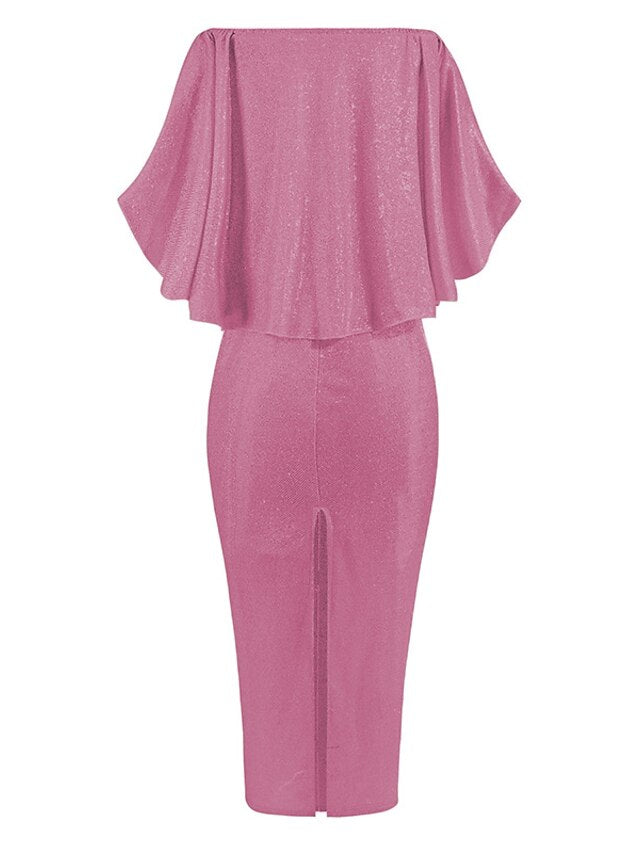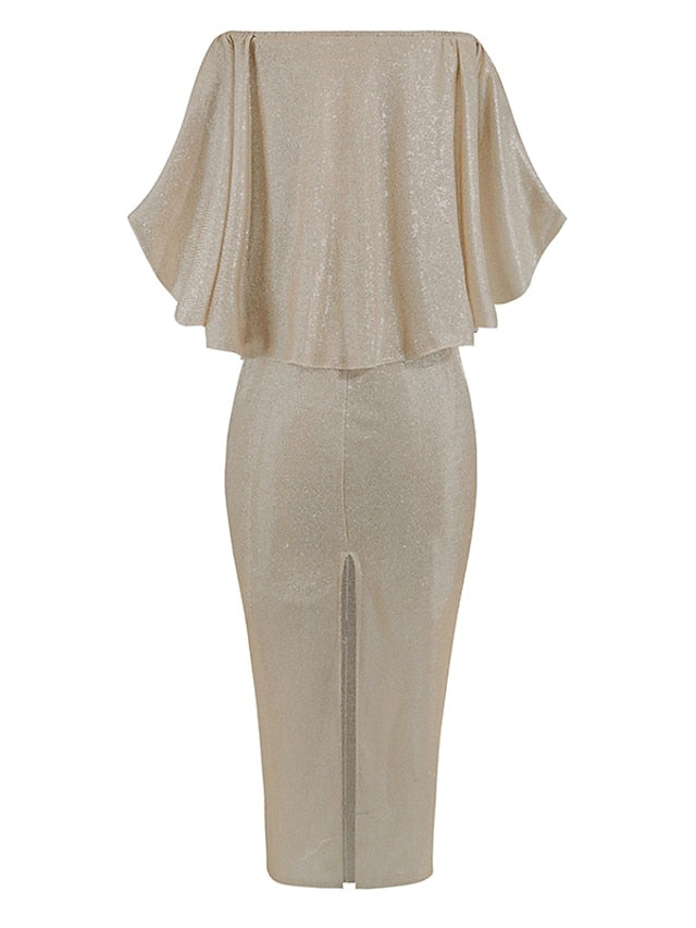Women's Dress - Formal Party Dress Cocktail Dress Long Dress Maxi Dress Silver Black Champagne Half Sleeve Pure Color Cold Shoulder Winter Fall Spring Off Shoulder Mature Evening Party Wedding