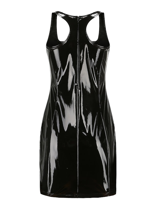 Trendy Women's Black Faux Leather Vivi Dress - Chic, Form-Fitting Evening Wear with Stylish Detailing
