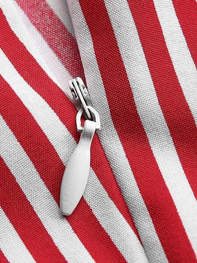 Women's Dress - Long Dress Maxi Dress Casual Dress Swing Dress A Line Dress Striped Basic Fashion Holiday Vacation Going out Ruffle Print Sleeveless Square Neck Dress Regular Fit Black Red Blue Spring Summer