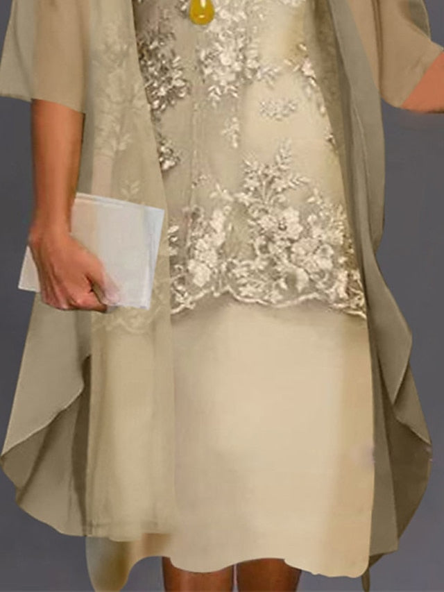 Women's Dress - Plus Size Casual Dress Floral Crew Neck Lace Half Sleeve Spring Fall Casual Midi Dress Daily Holiday Dress