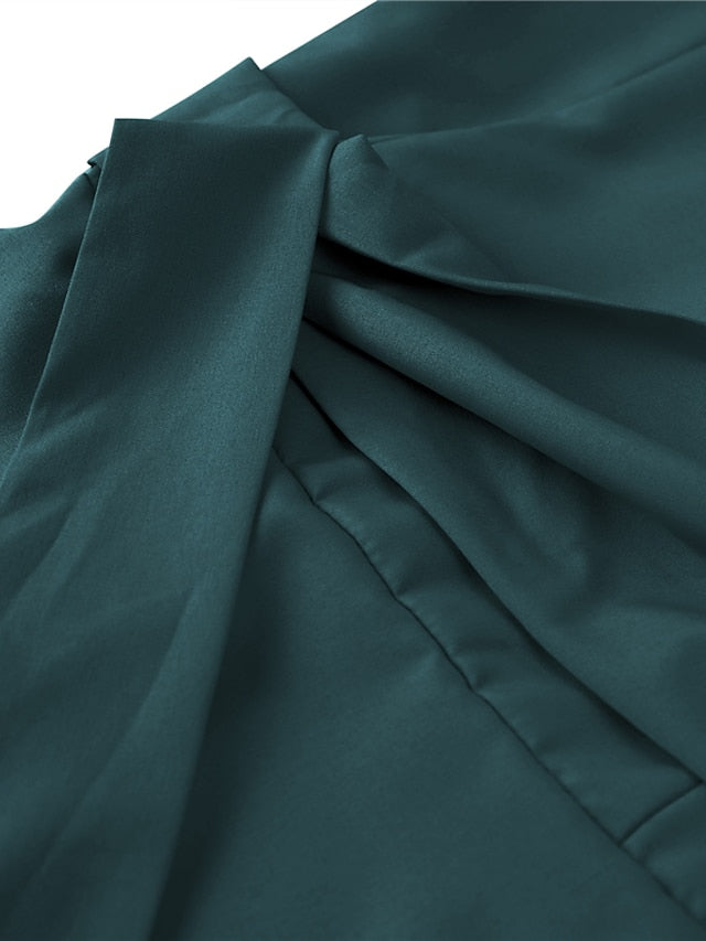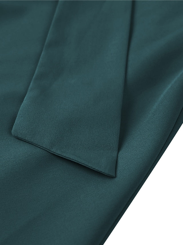 Women's Dress - Wedding Guest Dress Swing Dress A Line Dress Midi Dress Navy Blue Green Beige Half Sleeve Pure Color Lace up Summer Spring Crew Neck Work Party Vacation 2023 S M L XL XXL