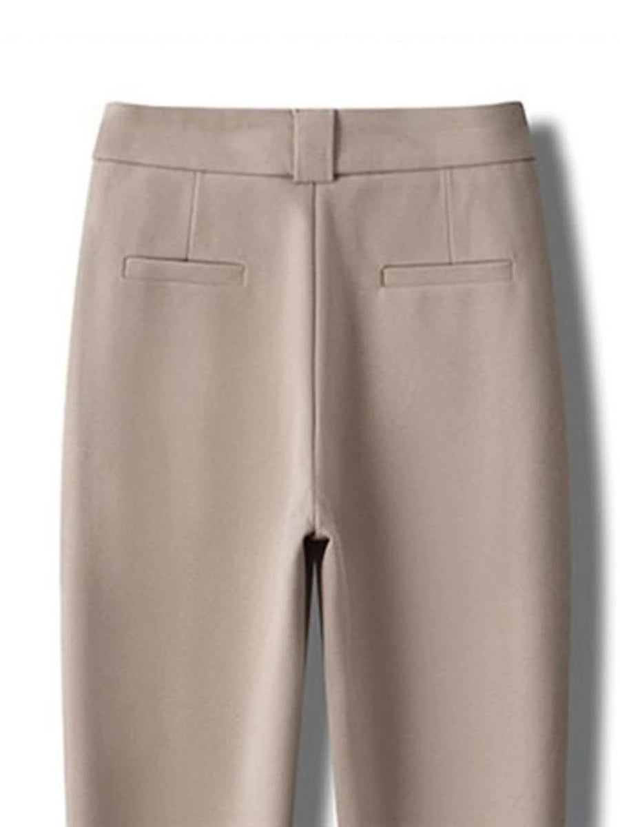 Women‘s Dress Pants Fleece Flannel Straight Full Length Fashion Streetwear Office Work Apricot Black S M Fall Winter