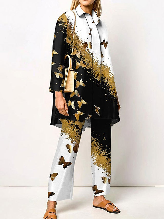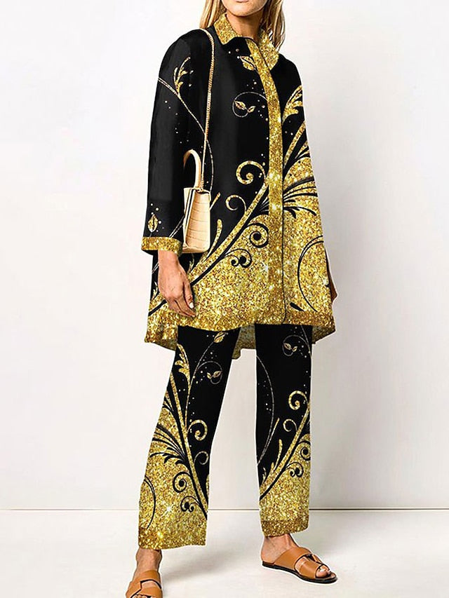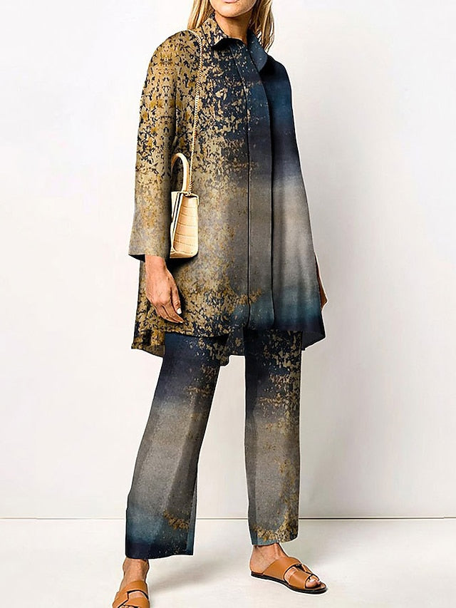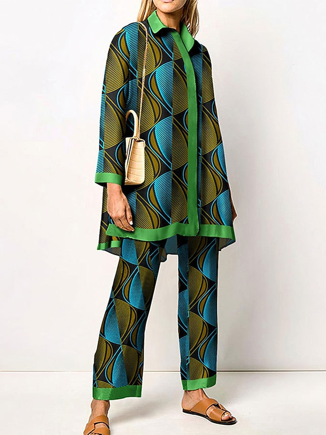 Women's Blouse Shirt Pants Sets Pants Trousers Streetwear Green Yellow Casual Daily Graphic Print Shirt Collar M L XL XXL 3XL
