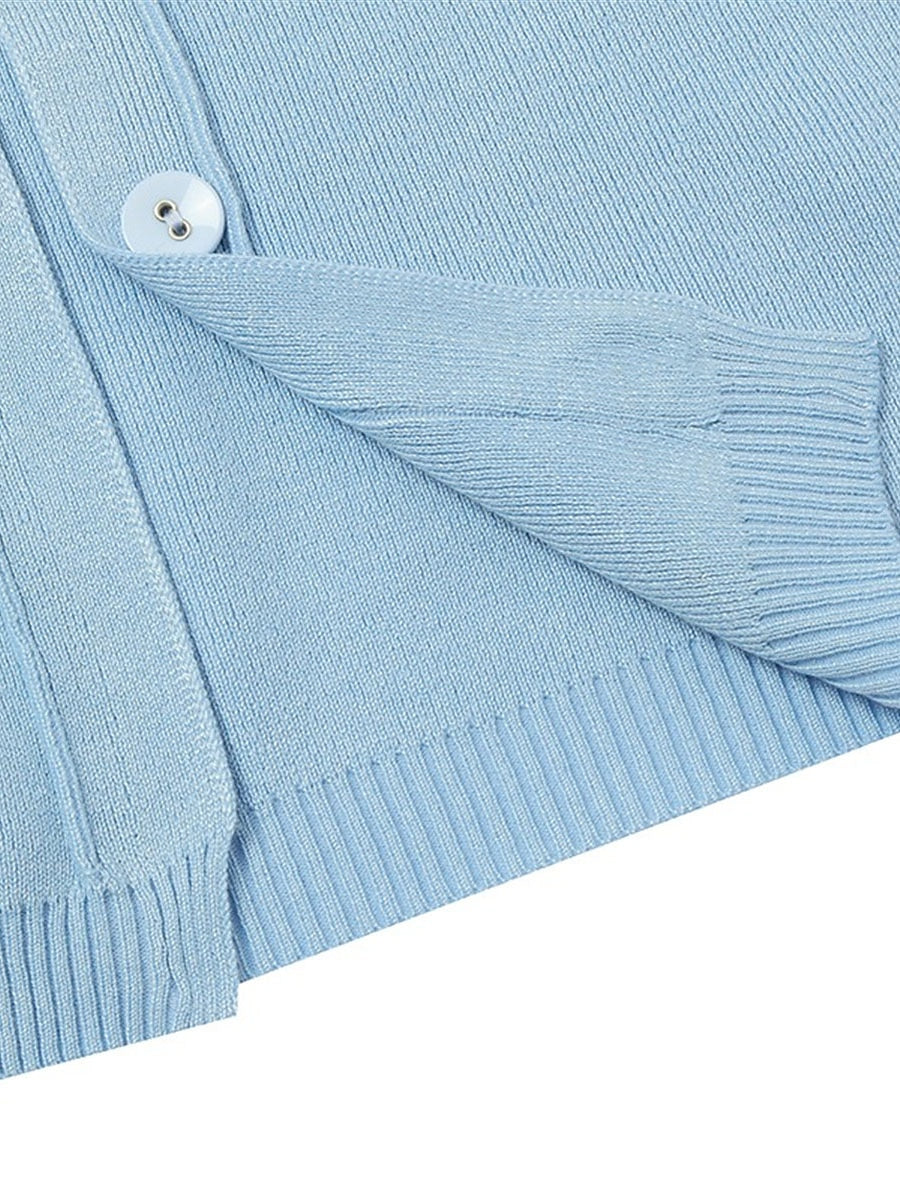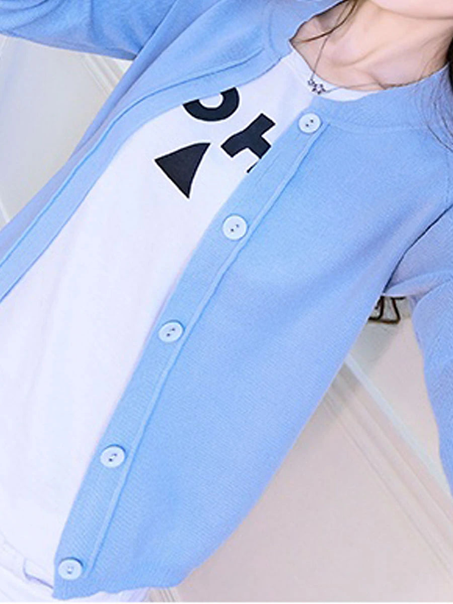 Women's Cardigan Sweater Crew Neck Ribbed Knit Acrylic Button Fall Winter Short Daily Going out Weekend Stylish Casual Soft Long Sleeve Solid Color Black Yellow Pink S M L