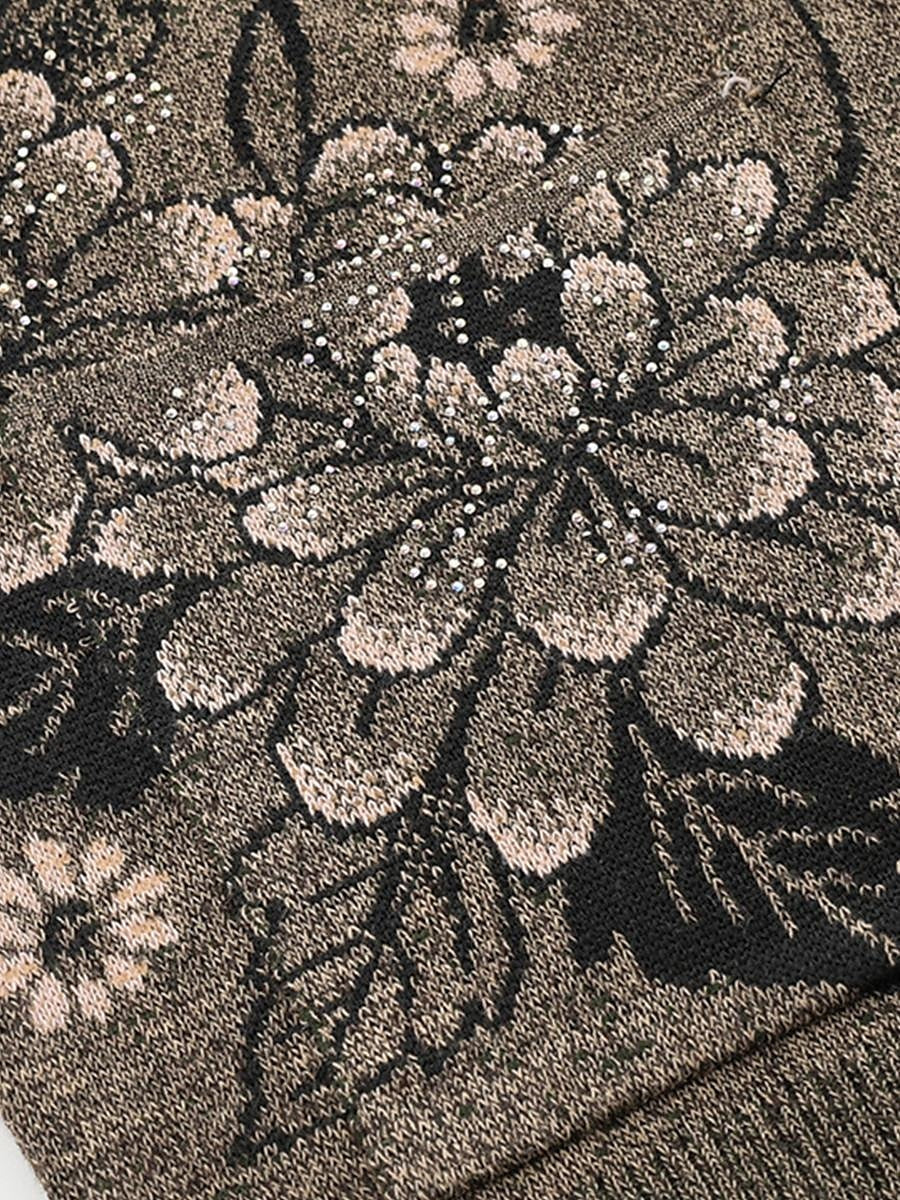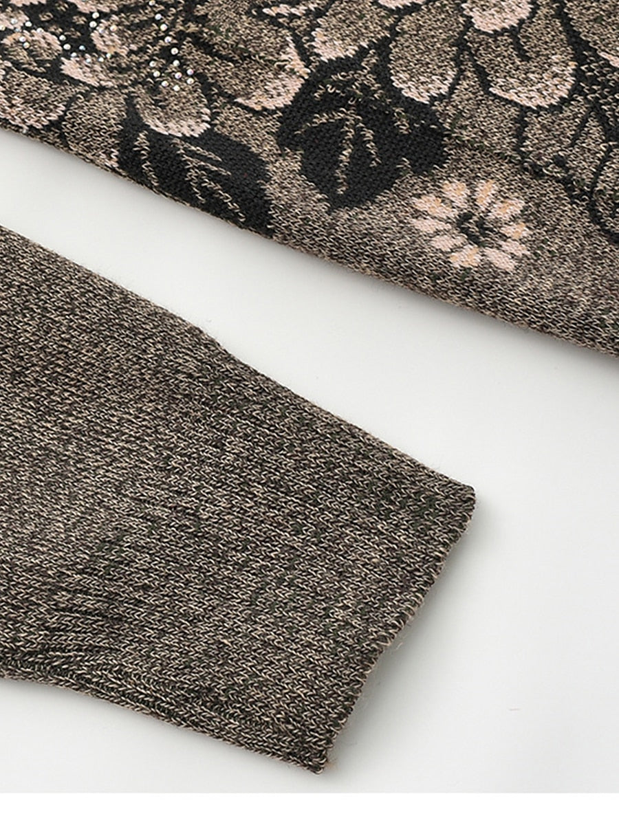 Women's Cardigan Sweater Crew Neck Ribbed Knit Polyester Button Pocket Fall Winter Outdoor Holiday Going out Stylish Casual Soft Long Sleeve Floral claret Grass Green Leather Pink XL 2XL 3XL