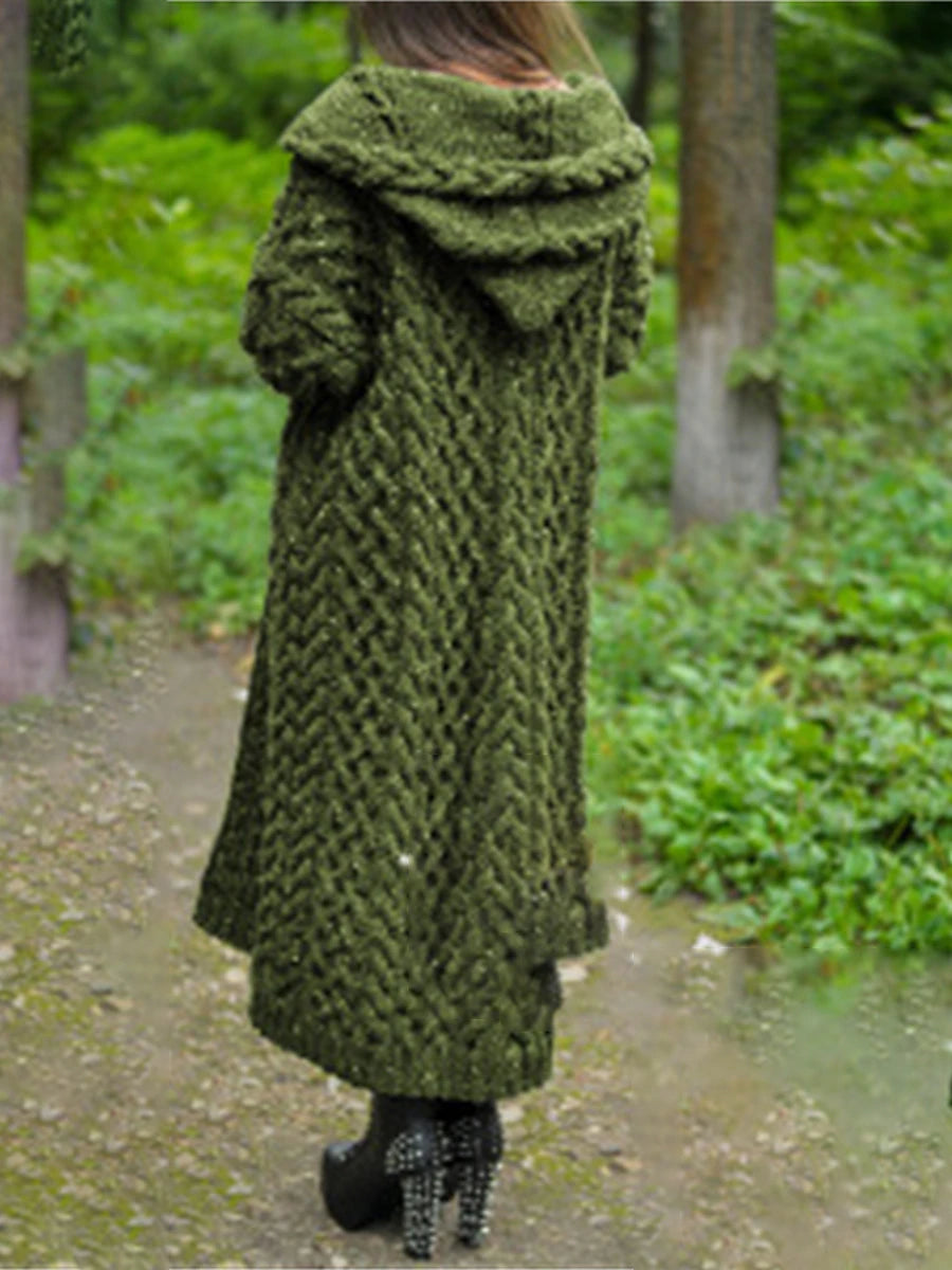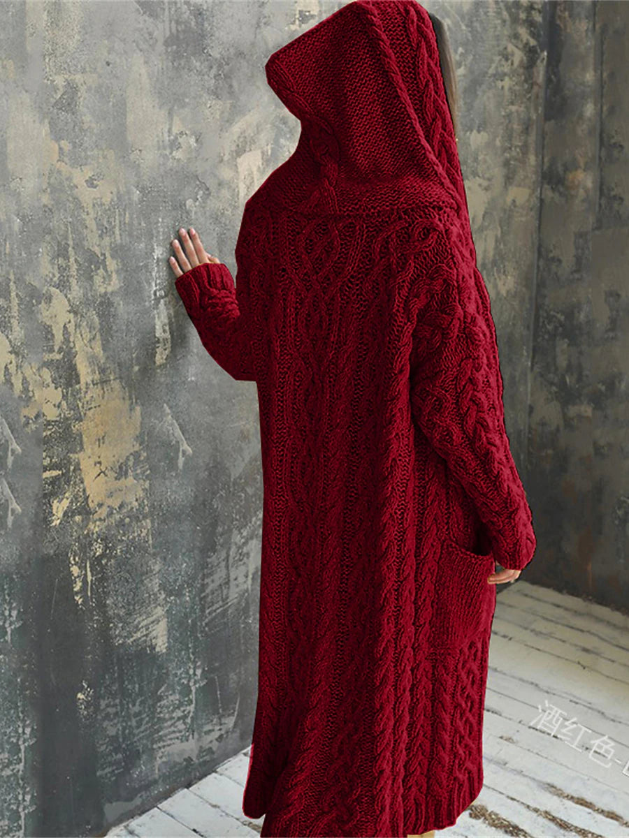 Women's Cardigan Sweater Hooded Cable Knit Polyester Pocket Hooded Fall Winter Long Outdoor Daily Going out Stylish Casual Soft Long Sleeve Solid Color Black Yellow Pink S M L