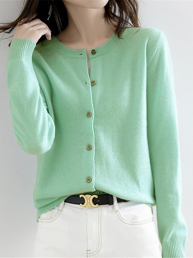 Women's Cardigan Sweater Jumper Ribbed Knit Button Solid Color Crew Neck Stylish Casual Outdoor Daily Autumn Winter Wine Red Big red S M L