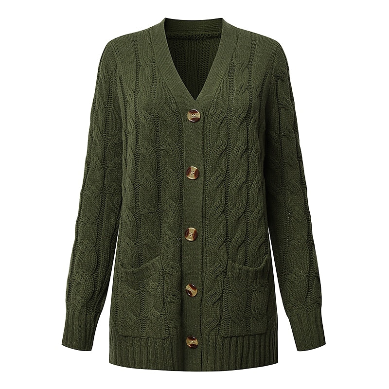 Women's Cardigan Sweater Open Front Cable Chunky Knit Button Pocket Fall Winter Tunic Daily Casual Soft Long Sleeve Solid Color Dark powder Black White S M L