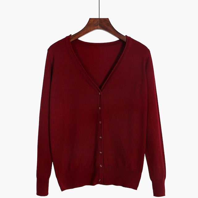 Women's Cardigan Sweater V Neck Knit Cotton Button Knitted Thin Summer Spring Outdoor Work Daily Stylish Casual Soft Long Sleeve Pure Color Yellow Wine Camel M L XL