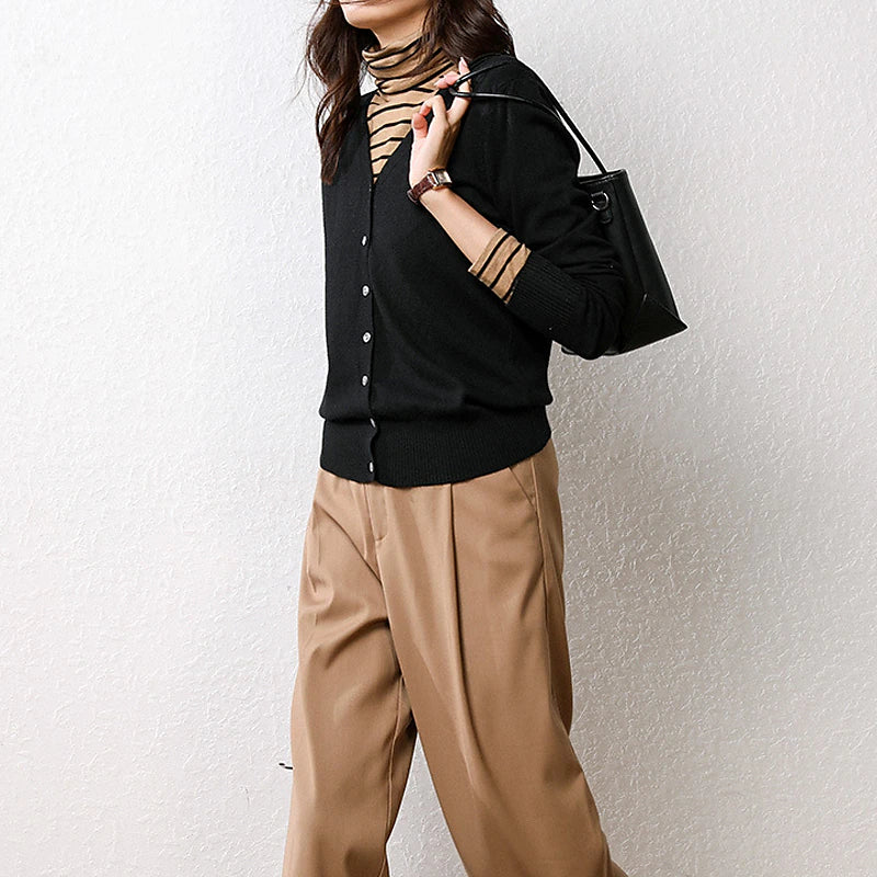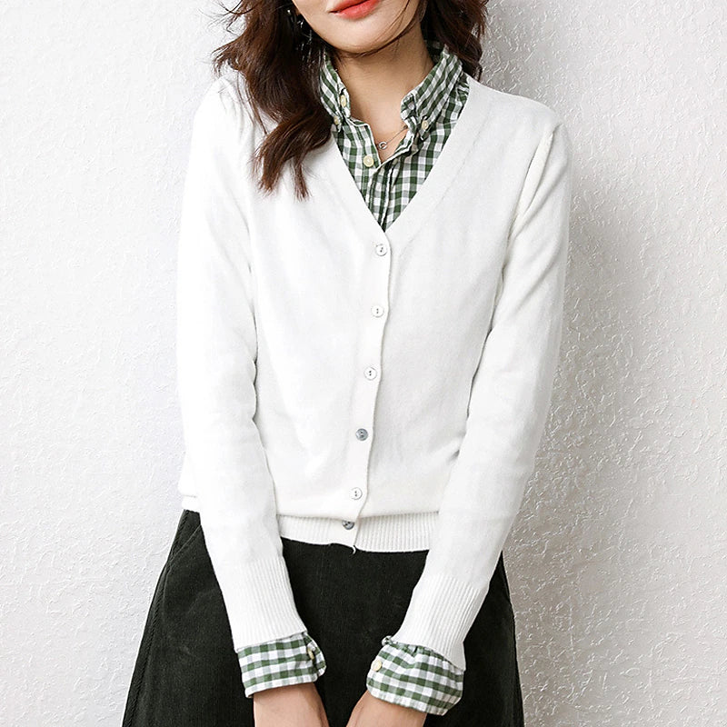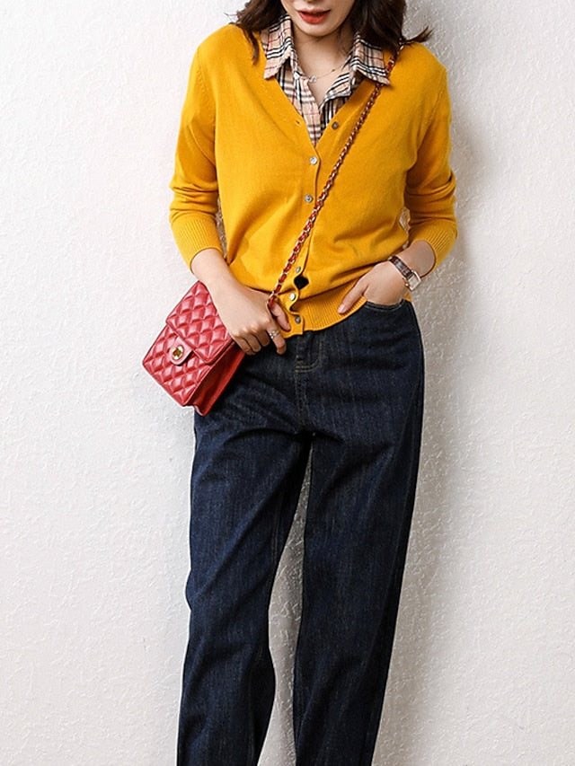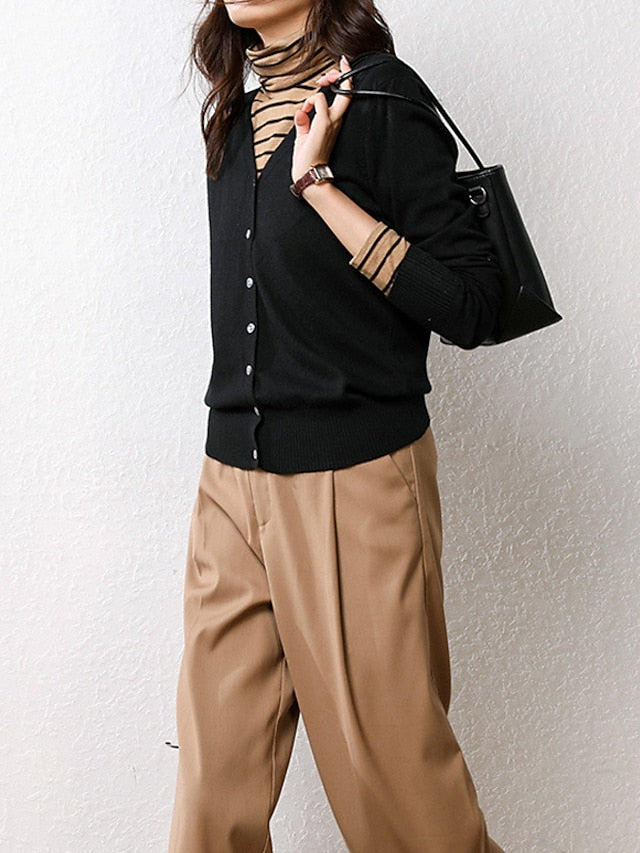 Women's Cardigan Sweater V Neck Ribbed Knit Polyester Button Fall Winter Short Daily Going out Weekend Stylish Casual Soft Long Sleeve Solid Color Haze blue Black White S M L